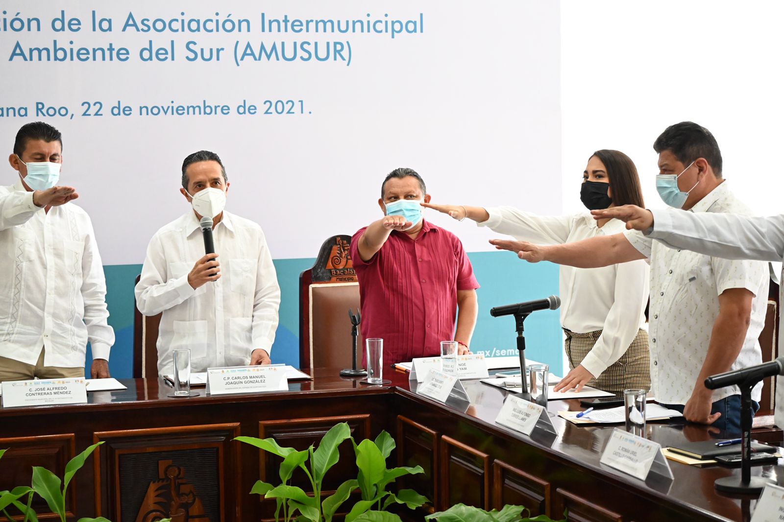 Este lunes 22 de noviembre, el Gobernador de Quintana Roo, Carlos Manuel Joaquín González, tomó protesta a la presidenta municipal de Othón P. Blanco, Yensunni Martínez Hernández, para encabezar la junta de gobierno de la Asociación Intermunicipal para el Medio Ambiente del Sur (AMUSUR).