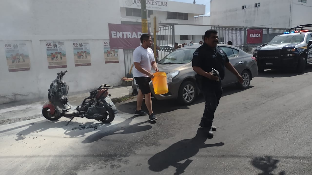 SE INCENDIA MOTOCICLETA Y PARAMÉDICO LOGRA APAGARLA (VIDEO)