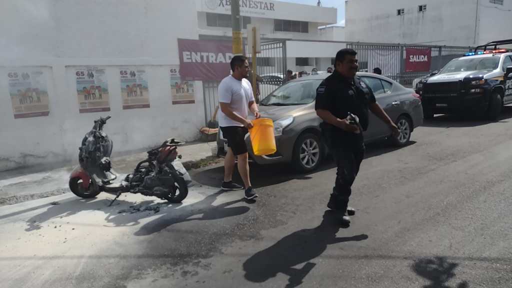Esta situación provocó que varios conductores intentara apagar la unidad sin lograr conseguirlo, aunque esto no hizo que el paramédico Fernando Benitez, se rindiera y utilizando cubetas de agua y también un extintor, logró controlar el fuego, otras personas ayudaron con sus extintores para lograr evitar las llamas continuaran consumiendo la motocicleta.