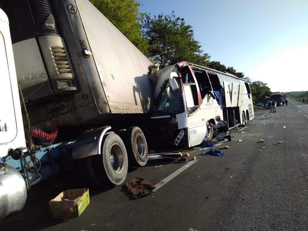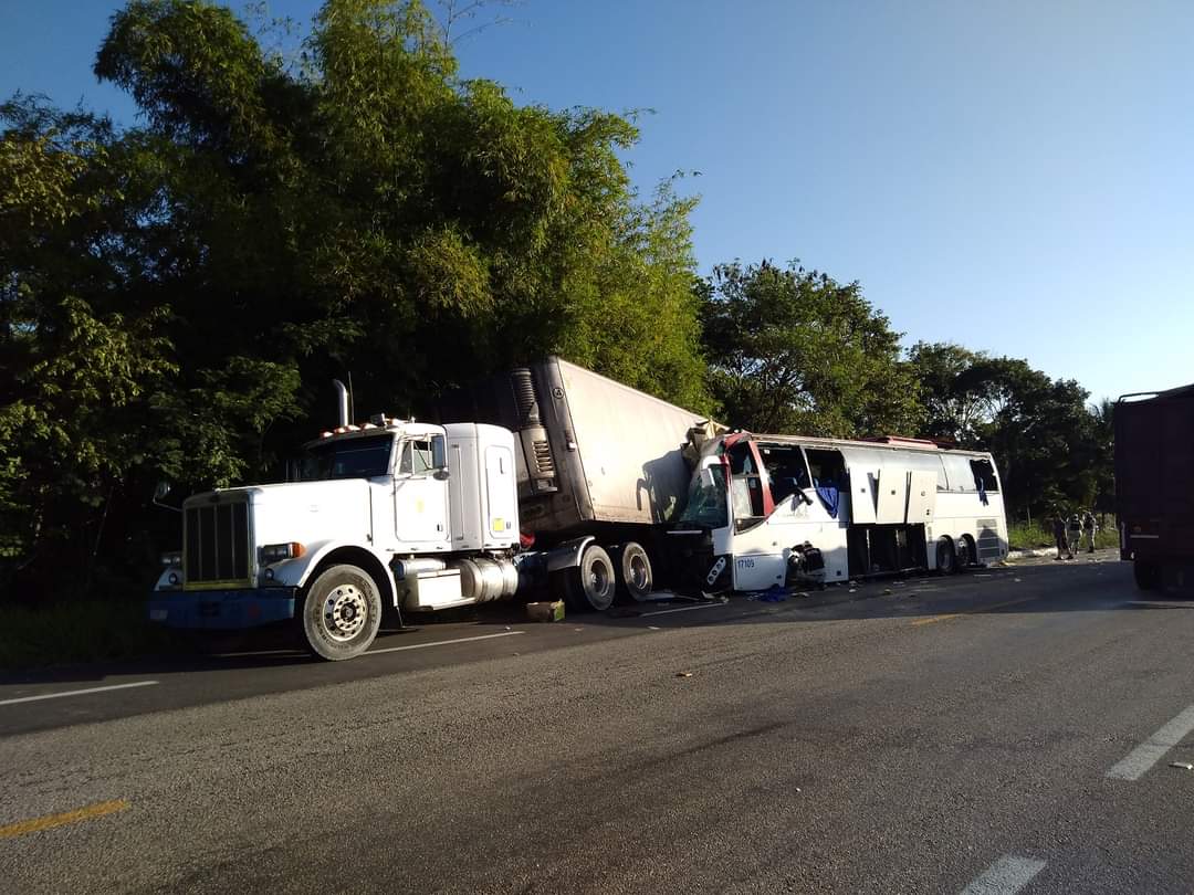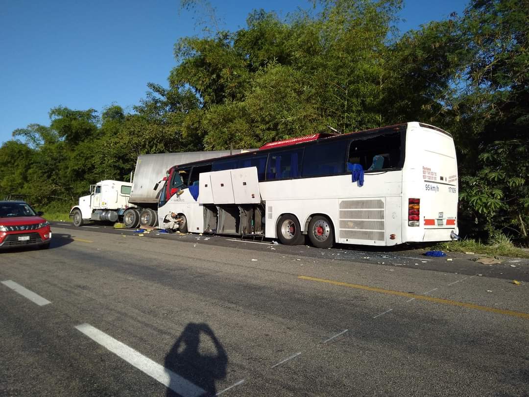 El percance ocurrió cuatro kilómetros antes de llegar a la comunidad de Nicolás Bravo cuando el autobús con número económico 1709 impacto por detrás al tráiler con placas 12-AT- 7Y, provocando el frente del camión de pasajeros quedara destrozado y varias personas resultaran lesionadas e incluso otras quedaran prensadas en el interior de los fierros.