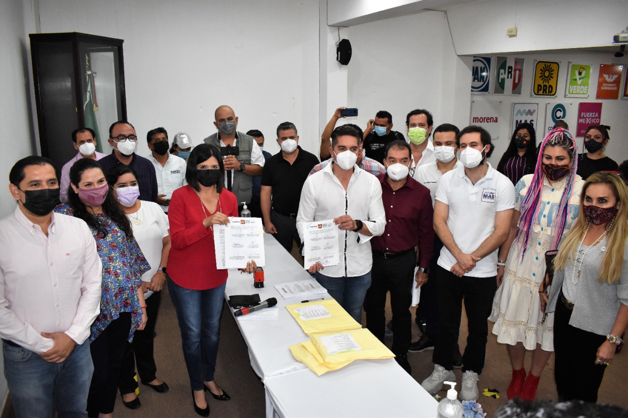Poco antes de la medianoche de ayer, los dirigentes de los partidos Morena, Verde (PV), del Trabajo (PT) y Movimiento Auténtico Social (MAS) entregaron ante el Instituto Electoral de Quintana Roo (Ieqroo) la solicitud de Intención de Coalición y Convenio de Candidaturas Comunes en cuatro distritos electorales.