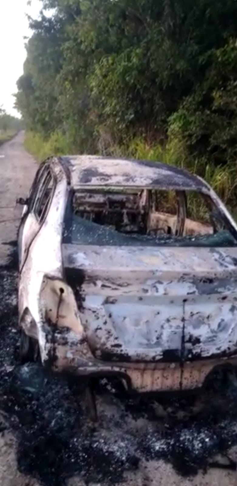 ENCUENTRAN AUTOMÓVIL INCINERADO EN UNA BRECHA