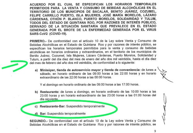 Hay que señalar que los negocios como son minisupers y los restaurantes tendrán un cambio en el horario para la venta de bebidas alcohólicas en horarios específicos.