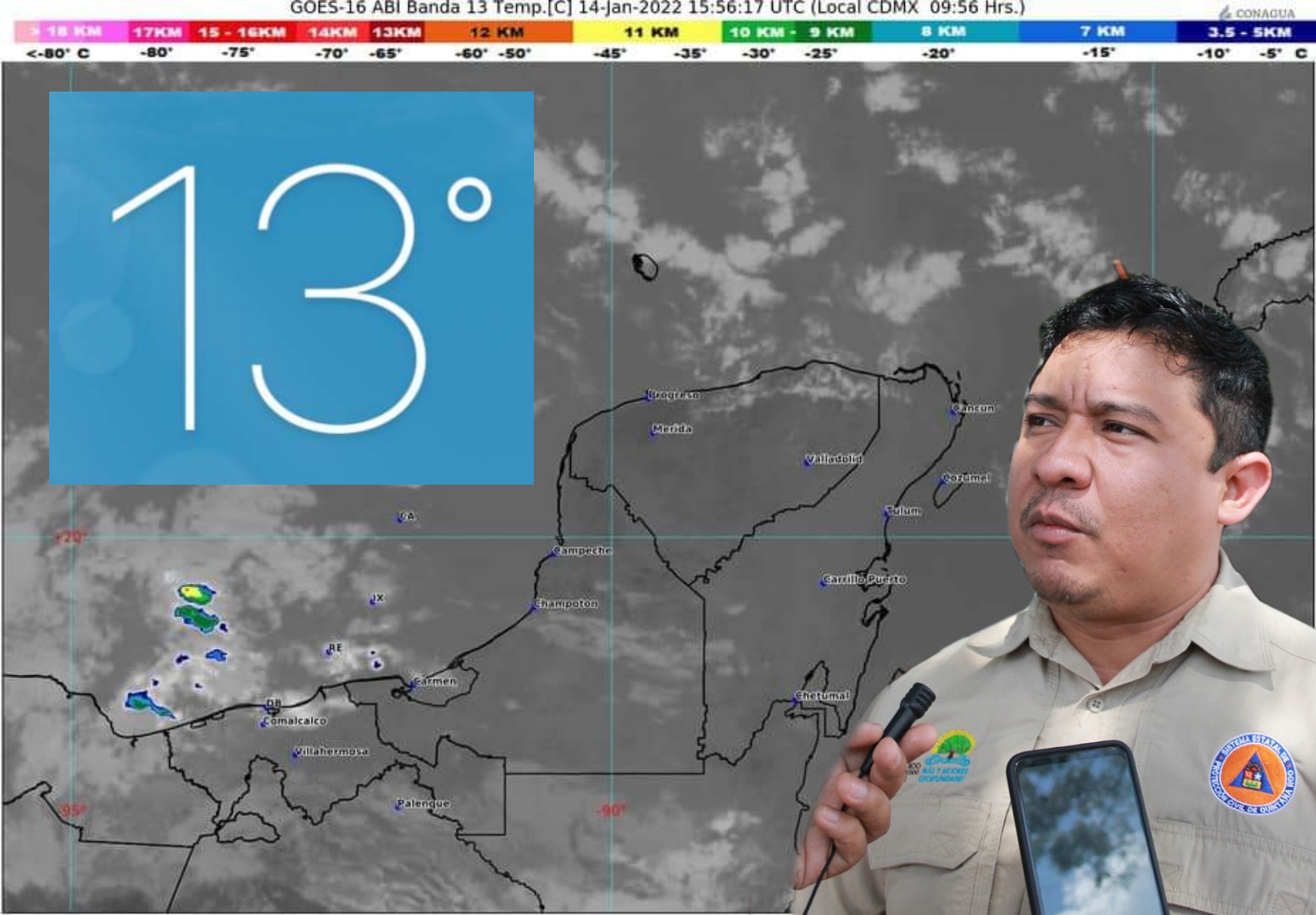 Chetumal.- Adrián Martínez Ortega, director general de la Coordinación Estatal de Protección Civil (COEPROC), informó que la madrugada de este viernes se registró la temperatura más baja de la Temporada Invernal 2021-2022, con base al reporte de las estaciones automáticas y convencionales del Servicio Meteorológico Nacional, de igual manera explico que aún vamos en el frente frío número 21 de los 56 que se tienen pronosticados para esta temporada.