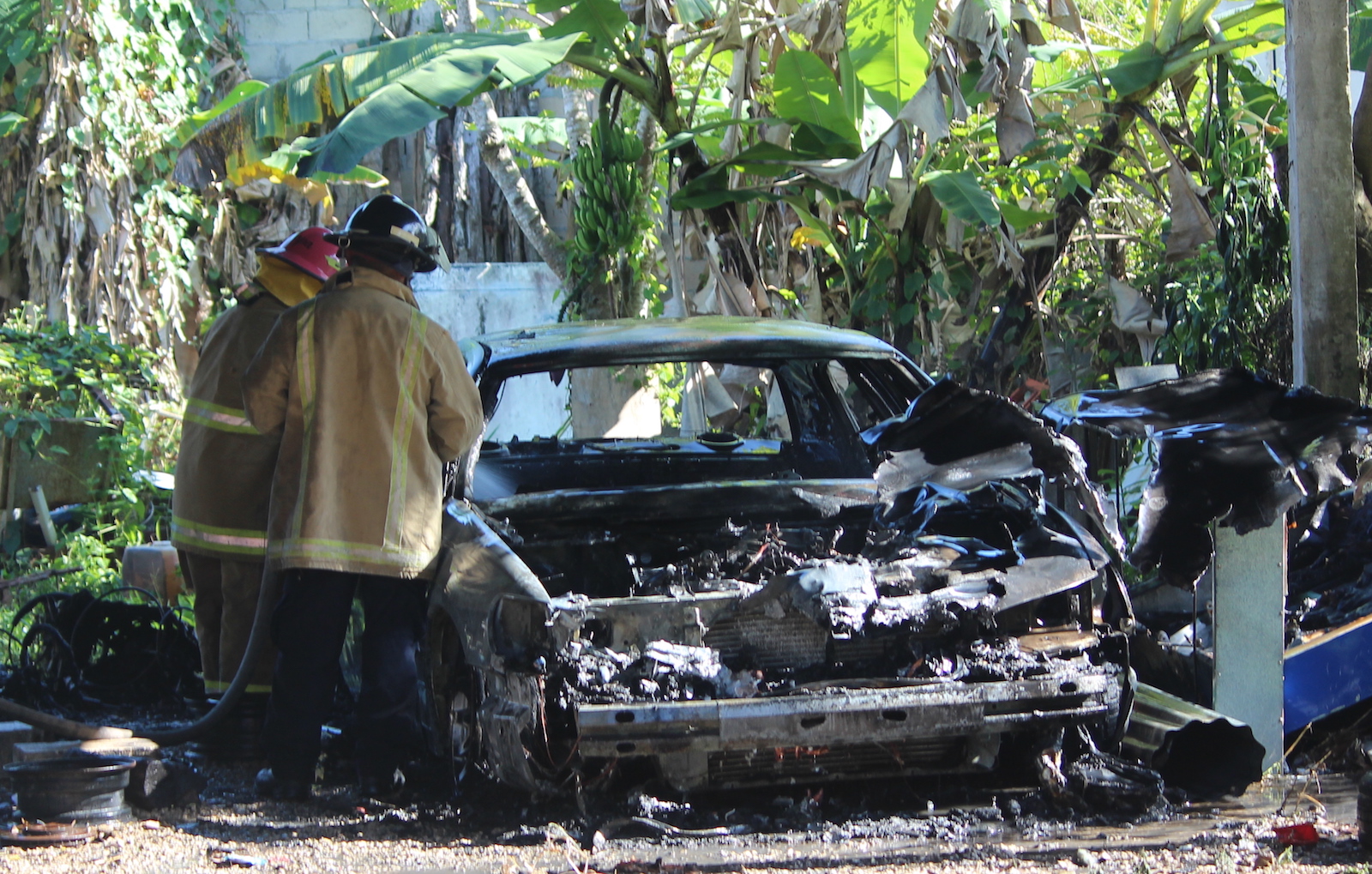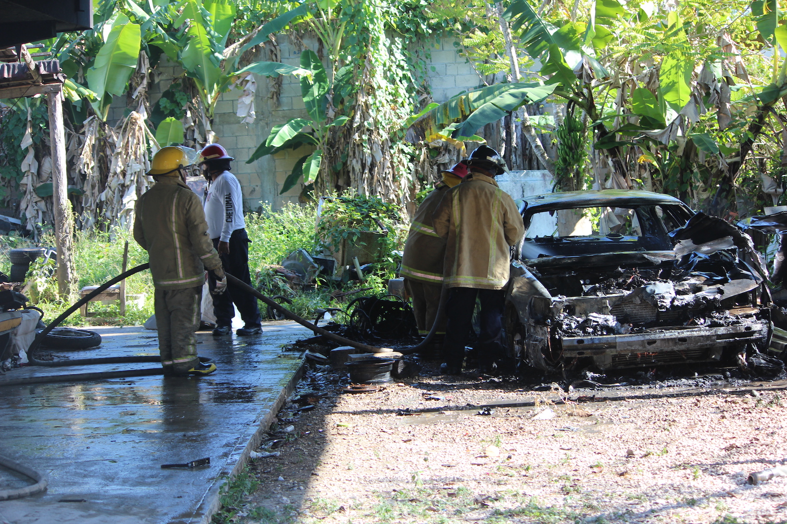 El hecho fue reportado por vecinos de la calle Guerrero entre Oaxaca y Revolución, ya que requerían de apoyo de los cuerpos de emergencia para apagar el fuego, fue así que el personal de bomberos de la ciudad de Chetumal salió en camino hasta el poblado ubicado a poco más de 11 kilómetros de la ciudad, pero a su llegada ya era muy tarde, el coche había sido reducido a cenizas y solo se apreciaban partes metálicas de la carrocería.