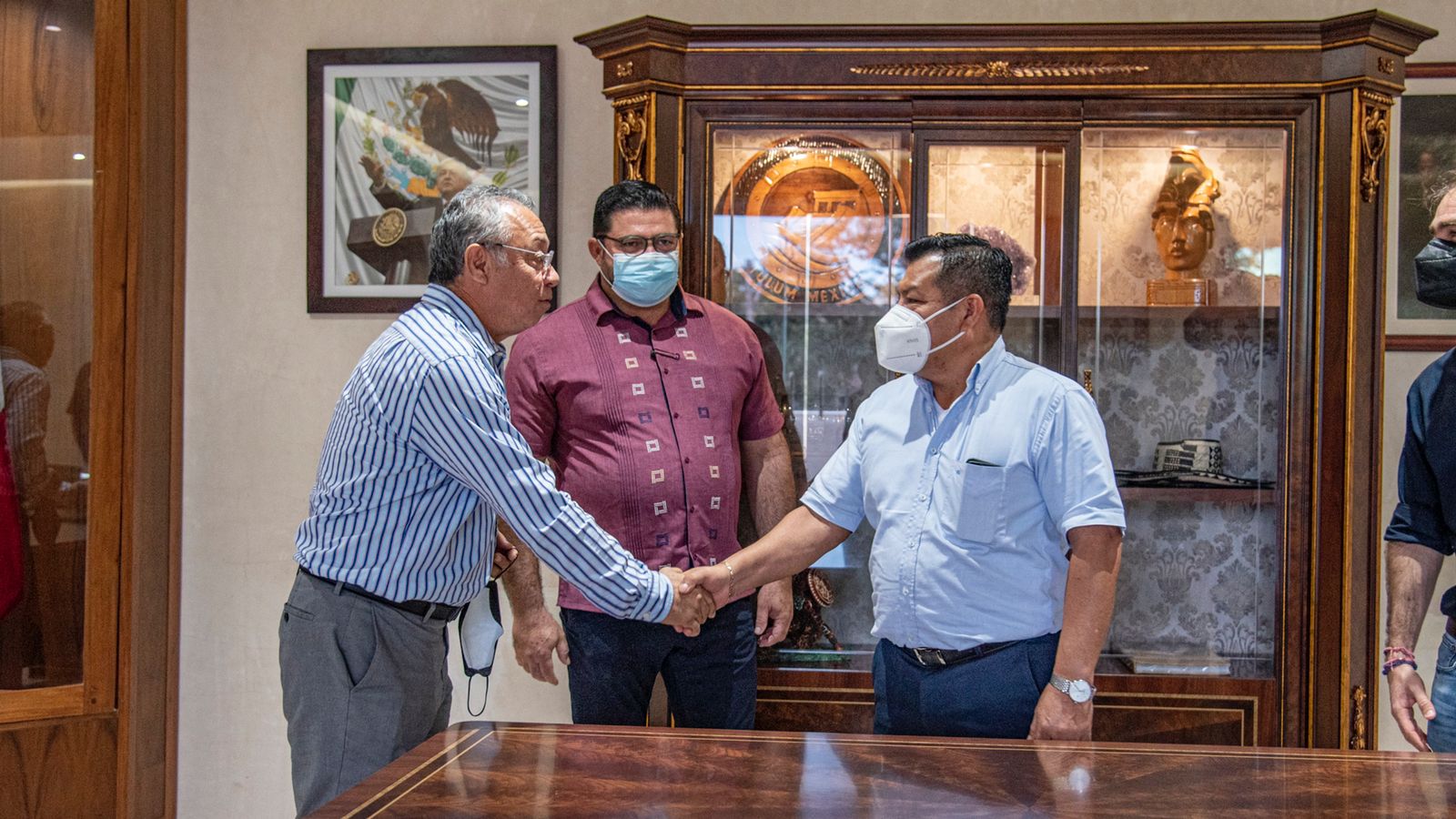 Al acto de protocolización de las escrituras públicas para la formalización de la donación del área destinada para la Universidad Tecnológica de Tulum, se sumó Abraham Rodríguez Herrera, director general del IFEQROO, Darek Escandar Mata Rodríguez, rector de la máxima casa de estudios y el tesorero del H. Ayuntamiento, Diego Castañón Trejo.