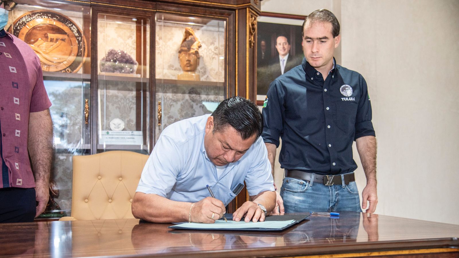 Tulum.- El presidente municipal de Tulum, Marciano Dzul Caamal, encabezó la formalización de firmas que darán certeza jurídica a las escrituras públicas del predio que su Gobierno donó para la construcción de la Universidad Tecnológica de Tulum, con financiamiento del Instituto de Infraestructura Física Educativa (IFEQROO).