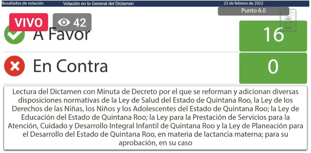 La XVI Legislatura del Congreso de Quintana Roo aprobó una serie de reformas a diversas leyes del estado promovidas por el diputado Edgar Gasca Arceo, presidente de la Comisión de Salud y Asistencia Social, cuyo objetivo es privilegiar el interés superior de la niñez al establecer la promoción y fomento de la lactancia materna comoSigueSigue leyendo «LACTANCIA MATERNA SERÁ UN SERVICIO BÁSICO DE SALUD EN QUINTANA ROO»