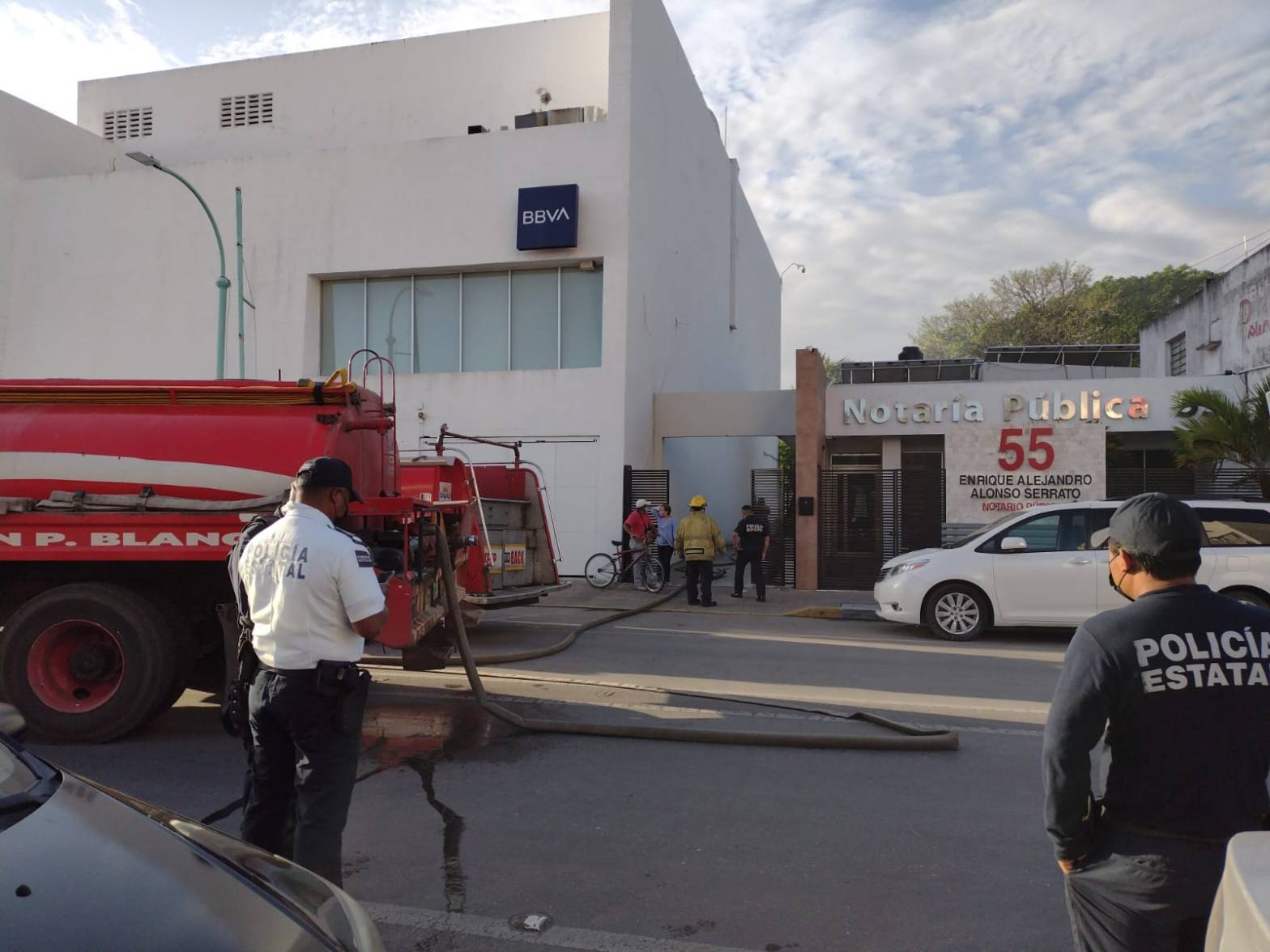 CAMIONETA SE INCENDIA EN EL INTERIOR NOTARÍA PÚBLICA NÚMERO 55