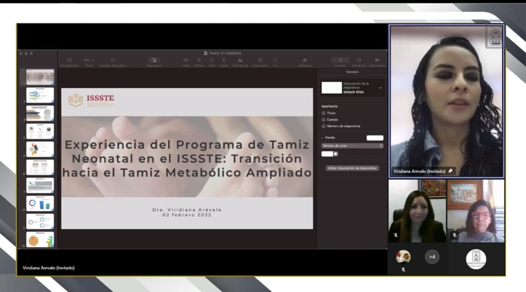 La doctora Viridiana Arévalo compartió la experiencia del Programa de Tamiz Neonatal en el ISSSTE y su transición hacia el Tamiz Metabólico Ampliado, que a partir de agosto de 2020 empezó a ofrecer sus servicios en el estado.