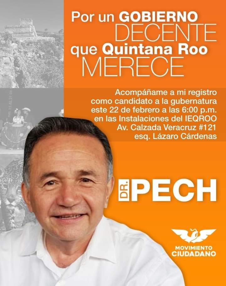 Este martes a las 18:00 horas el senador por la república, se registrara como candidato a la gubernatura de Quintana Roo por el Partido Movimiento Ciudadano, en el Instituto Electoral de Quintana.