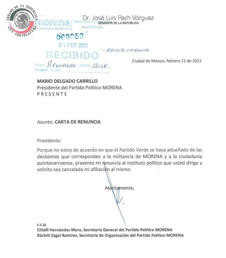 El senador por la República José Luis Pech Várguez ha dicho adiós a Morena, finalmente y tras haber dicho que no renunciaría y esperaría su expulsión, este optó por decirle adiós al partido que pertenecía hasta hace unas horas.