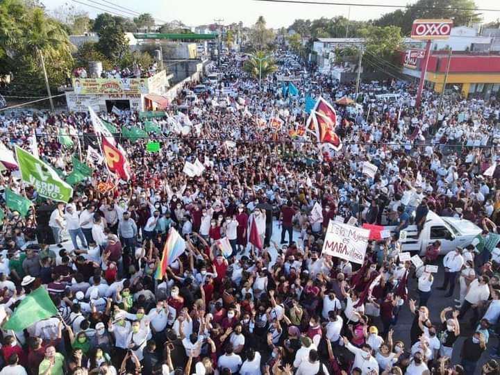 Dónde miles de simpatizantes de Morena y sus aliados (PVEM y PT) inundaron las principales arterias de la ciudad que se encuentran cerca del Instituto Electoral de Quintana Roo.