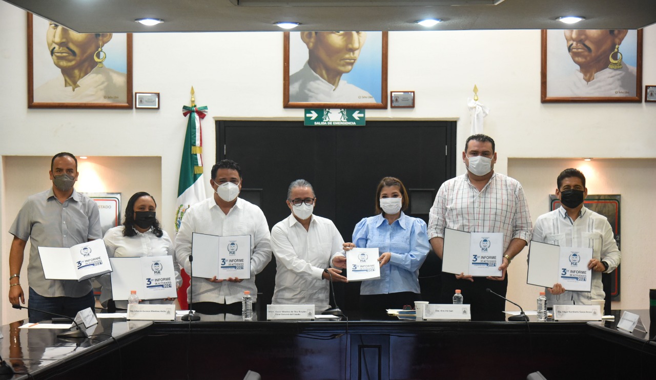 Además, el titular de la Fiscalía General del Estado hizo entrega por escrito del ejemplar del informe anual de actividades, para cumplir con lo establecido en la Ley Orgánica de la Fiscalía General del Estado y de la propia Constitución Política del Estado de Quintana Roo.
