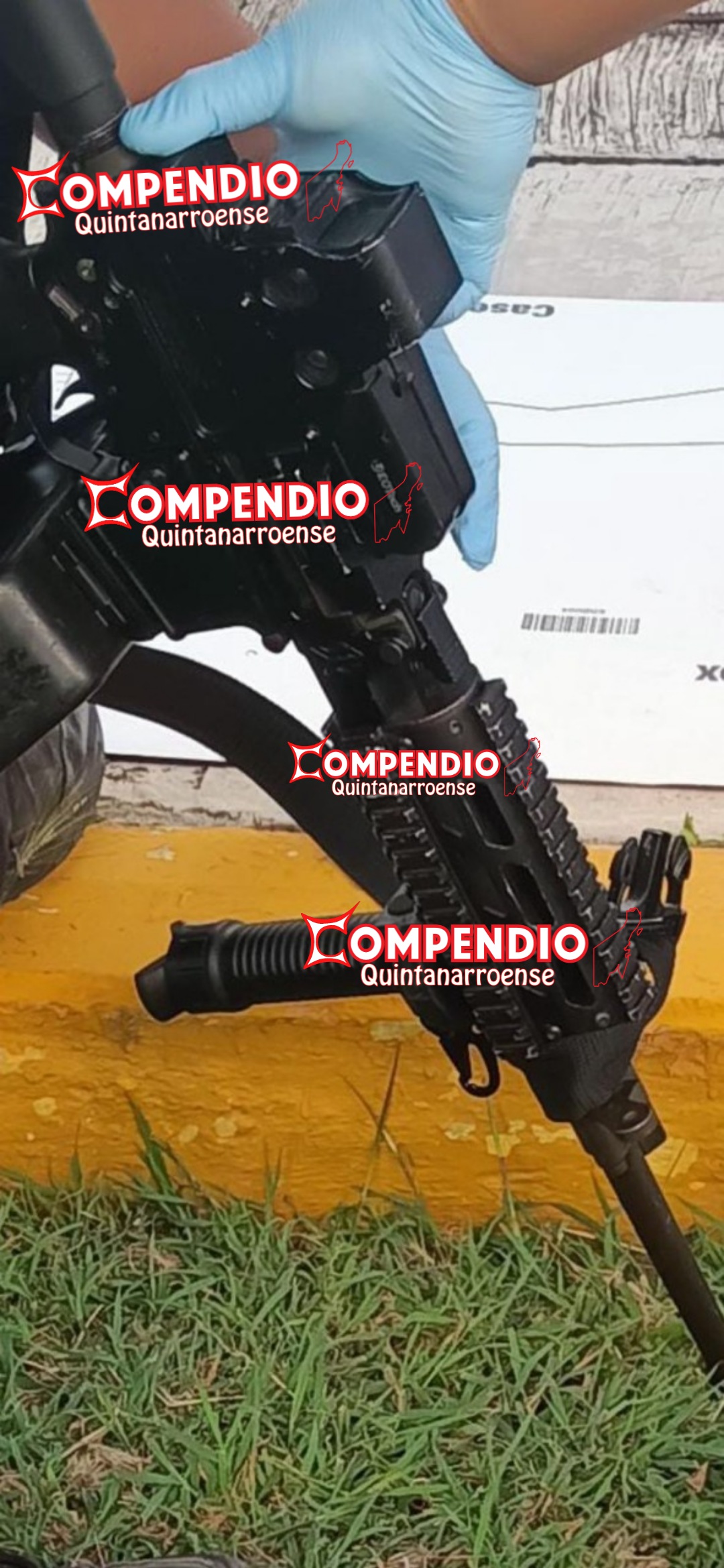 La unidad asegurada es una camioneta Toyota tipo Pick up color blanco que dejaron estacionada sobre la calle Isaac Medina con avenida Insurgentes a un costado de las instalaciones de la Delegación de la Fiscalía General de la República en Chetumal, además también se encontraron varias balas para está arma.