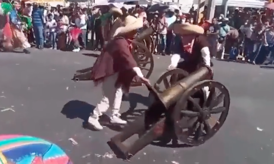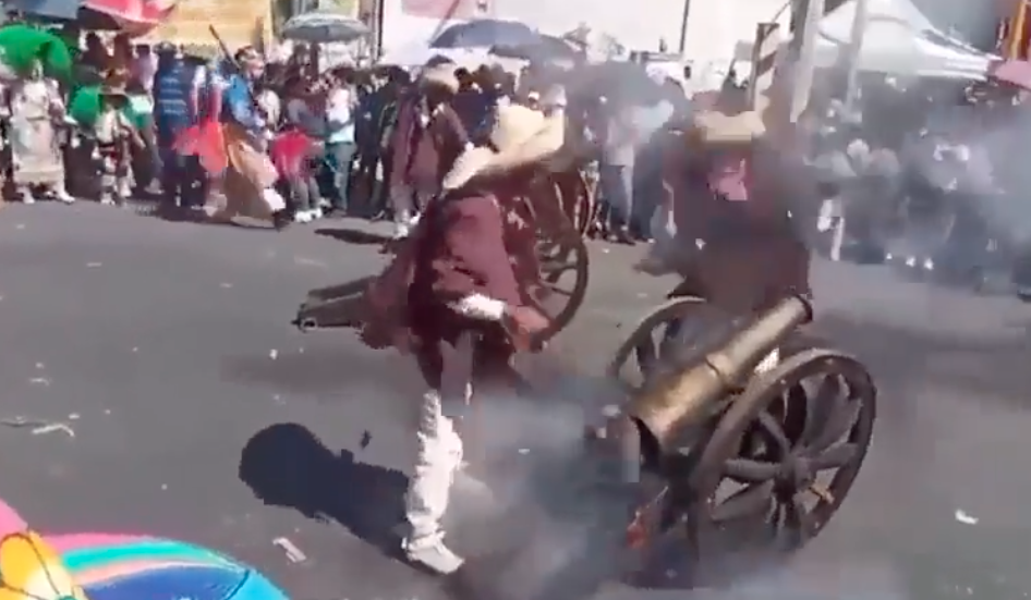Este hecho ocurrió el pasado domingo en el carnaval que se realizaba en el Huejotzingo estado de Puebla, cuando el joven identificado como Luis ‘N’, de 19 años de edad intentaba manipular el cañón y en una de esas lo mueve de manera que otra persona que sostenía una de las partes que activan el dispositivo, lo suelta y en ese momento sufre el cañonazo directo a la mano izquierda, incluso se puede ver el momento en que pierde la mano.