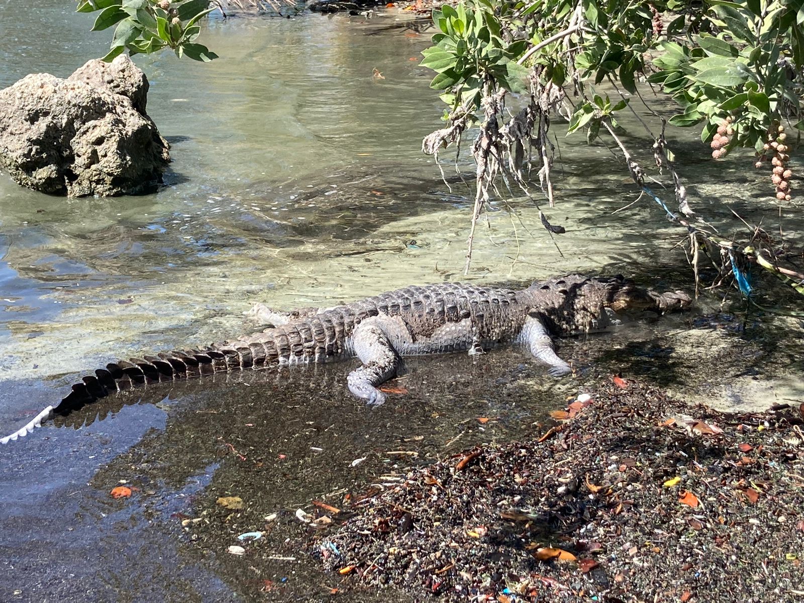 Un ejemplar de cocodrilo de pantano fue hallado muerto esta mañana en la orilla de la Bahía de Chetumal, se presume incluso que se trata de “Larry”, el reptil que por las tardes se acercaba al Monumento al Pescador, donde era alimentado con marquesitas y salchipapas.