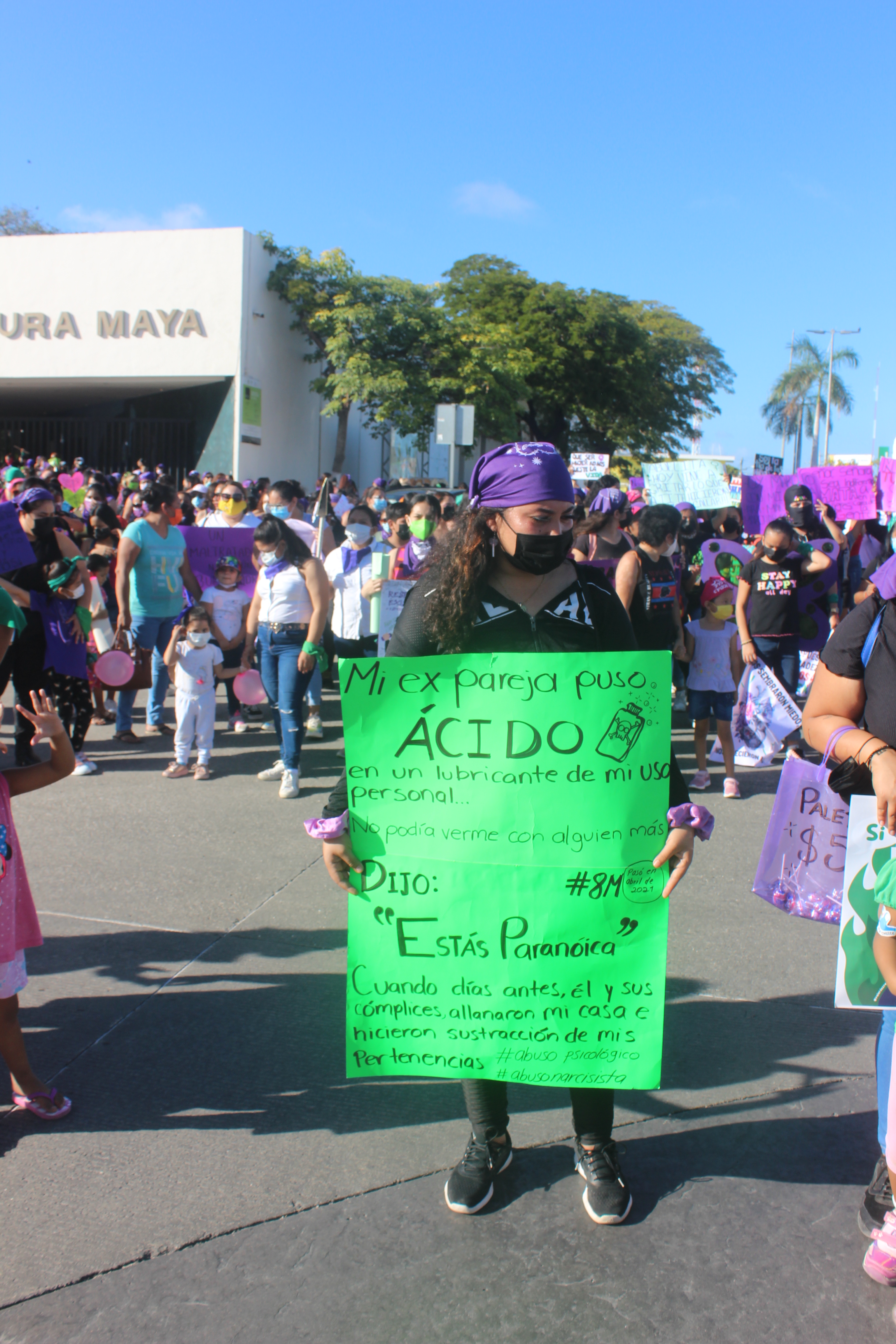 Al menos un millar de mujeres se manifestaron la tarde del 8 de marzo, en la ciudad de Chetumal, esto con motivo del día internacional de la mujer, donde señalan es necesario tener un estado libre de violencia en contra de la mujer.