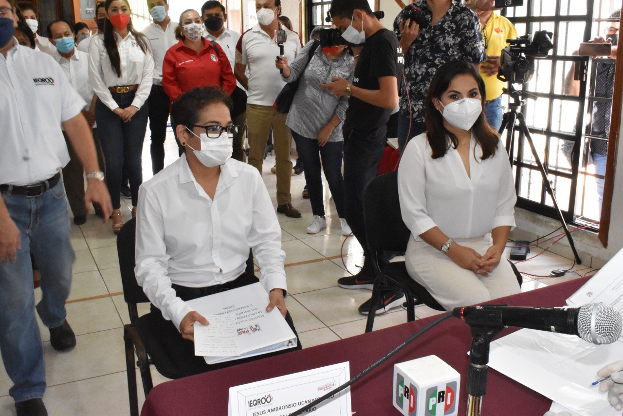 Estuvo acompañada de simpatizantes del Partido Revolucionario Institucional, la candidata a Gobernadora, Leslie Hendricks Rubio y también de la dirigente del partido a nivel estatal.