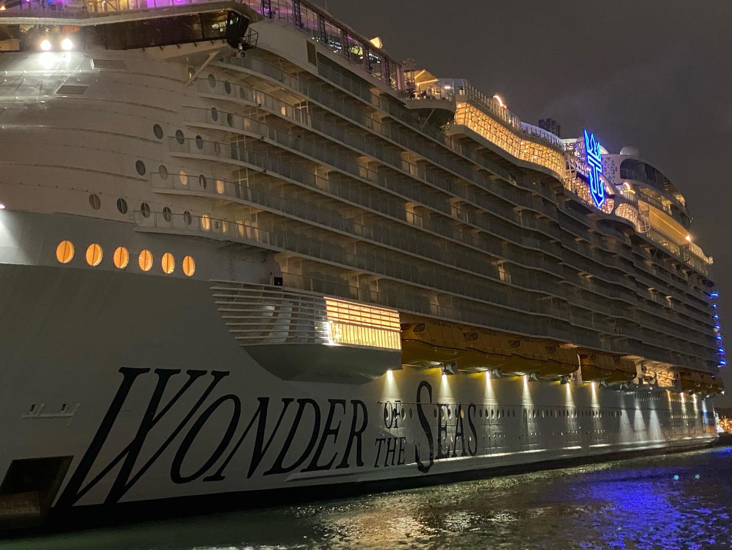 El Wonder of The Seas es el barco más grande del mundo, perteneciente a la empresa RoyalCaribbean, mismo que mide 64 metros de ancho y 362 metros de eslora, además de que puede alojar a casi 7.000 personas, contacto con una tripulación de 2.300 personas.