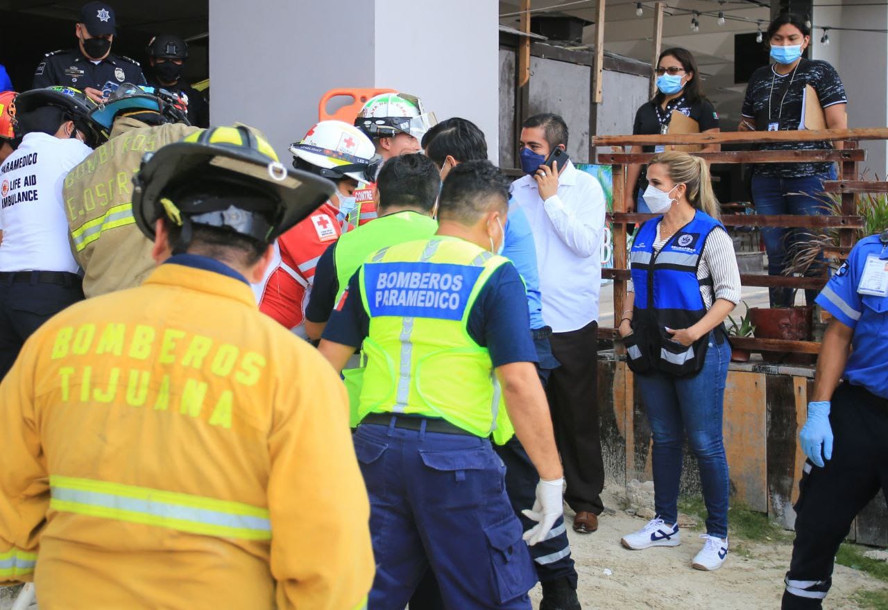 Elementos de la Policía Municipal, Cuerpo de Bomberos, Ejército, Guardia Nacional y peritos de la Fiscalía General del Estado (FGE) se encuentran en el lugar de los hechos para determinar el estado del inmueble ubicado en la calle 28 norte, frente al club de playa Mamita’s, en tanto se le da pronta atención a las personas lesionadas, 4 de estos han sido ingresados en el Hospital de Sesa de Playa del Carmen y otros 4 en la clínica del IMSS.