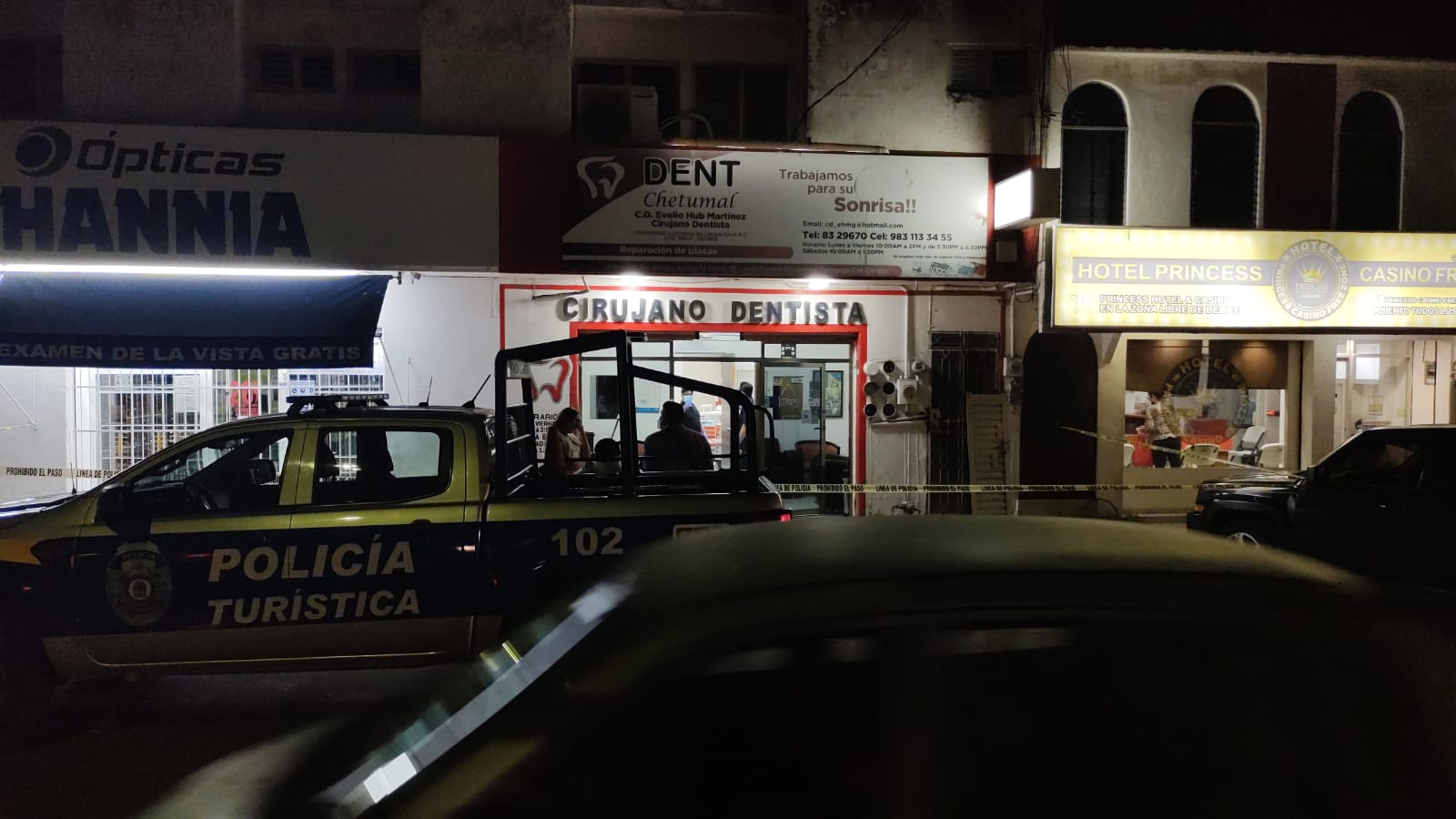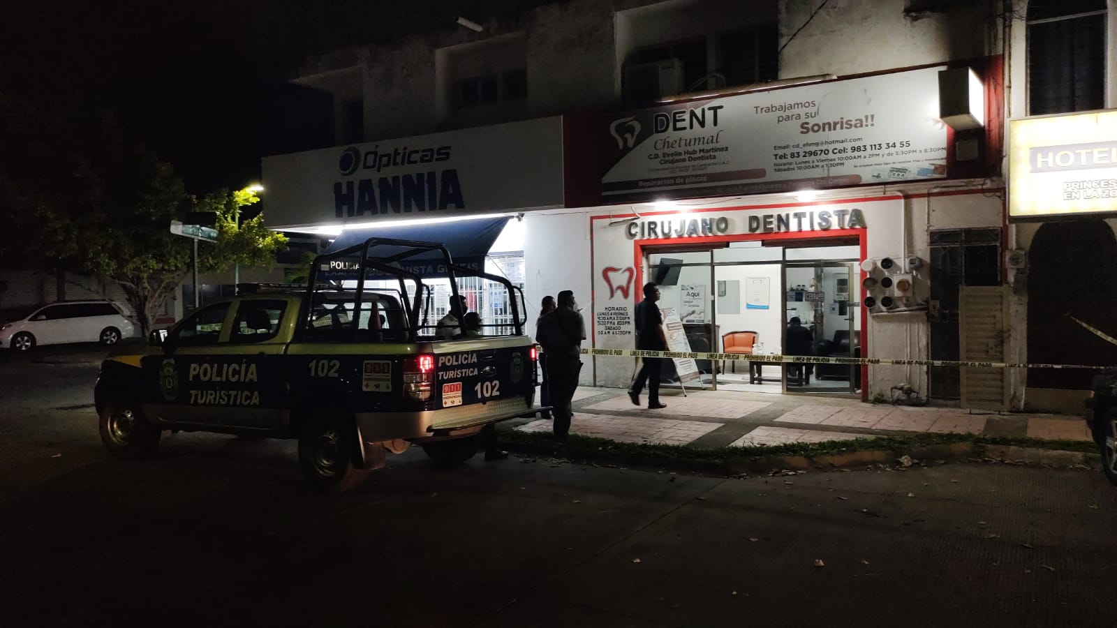 El hecho ocurrió aproximadamente a las 9 de la noche, en la clínica dental denominada Dent Chetumal, que se encuentra ubicado en la avenida Benito Juárez con avenida Plutarco Elías Calles de la colonia Centro, donde tres individuos armados con pistolas tipo escuadra y con la cara cubierta, llegaron al lugar a bordo de un coche color blanco.