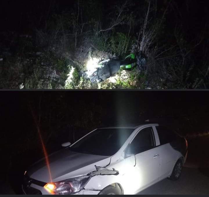 BRUTAL PERCANCE EN LA CARRETERA CAFETAL – MAHAHUAL, MOTO Y CARRO CHOCAN DE FRENTE, EL SALDO ES DOS PERSONAS LESIONADAS DE GRAVEDAD