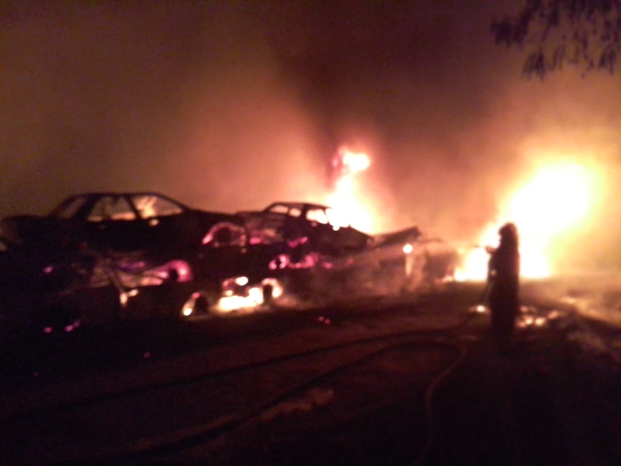 Por más de dos horas los bomberos combatieron el fuego hasta que tras usar 20,000 mil litros de agua, lograron apagar el fuego que había calcinado los autos viejos.