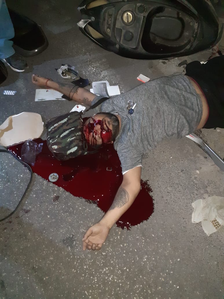 El motociclista reboto y cayo al pavimento donde quedo recostado boca arriba sin ningún signo de vida, mientras que su cráneo chorreaba sangre debido a la fractura de cráneo y exposición de masa encefálica derivada del brutal impacto; y es que a pesar de que paramédicos de la Unidad Médica de Bomberos llegaron al sitio para brindar los primeros auxilios no pudieron hacer nada ya que únicamente confirmaron la muerte del motociclista.