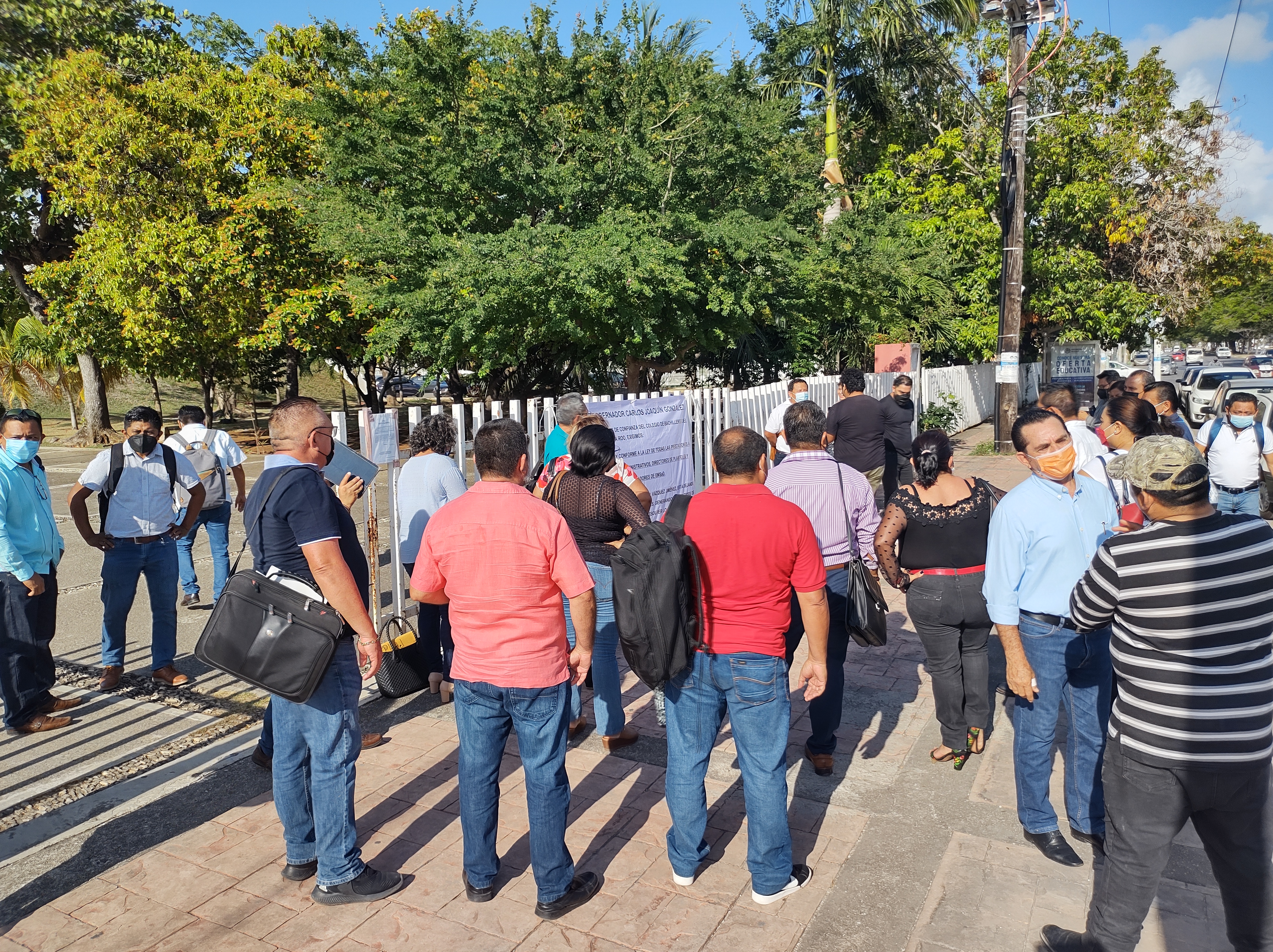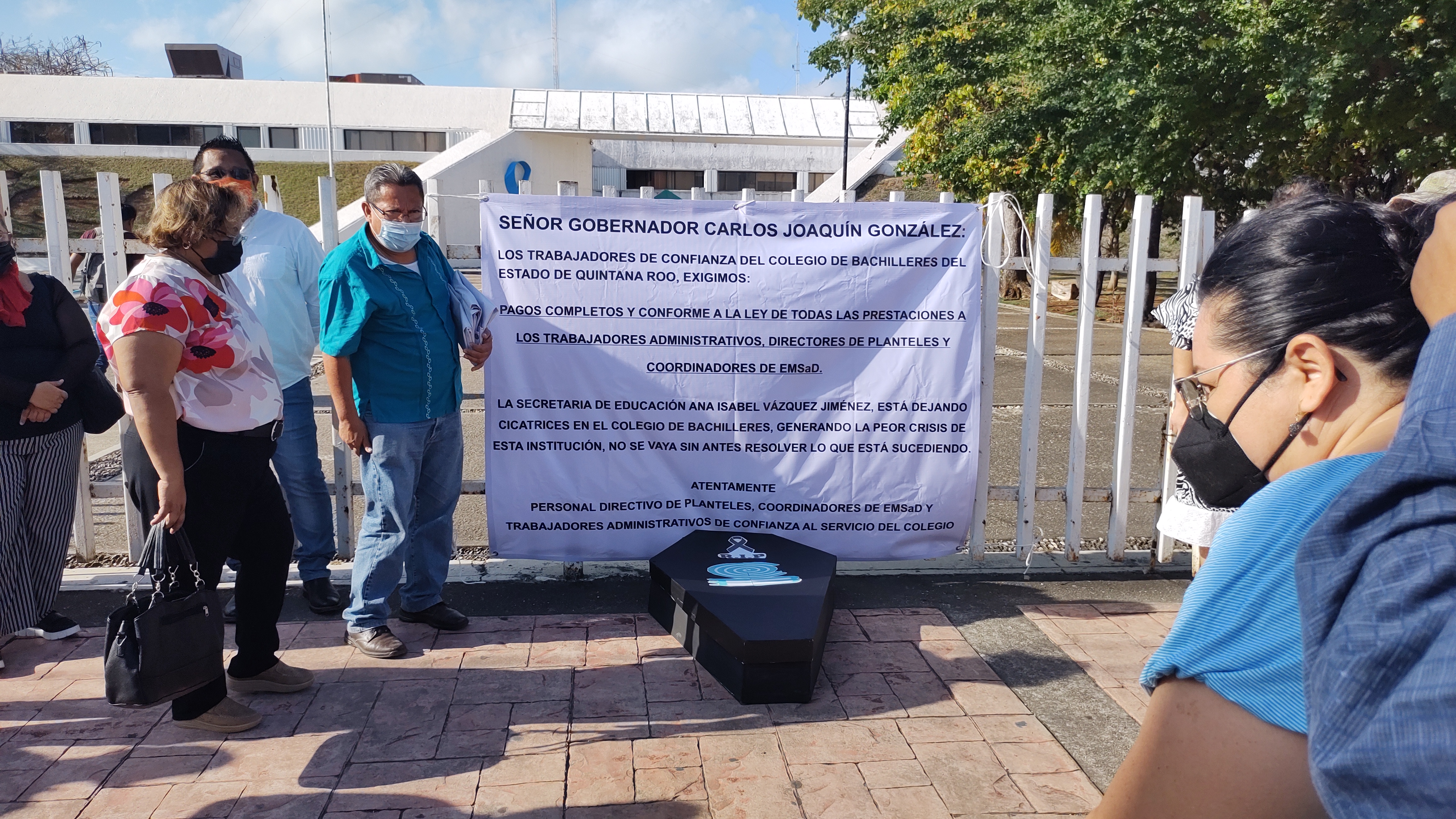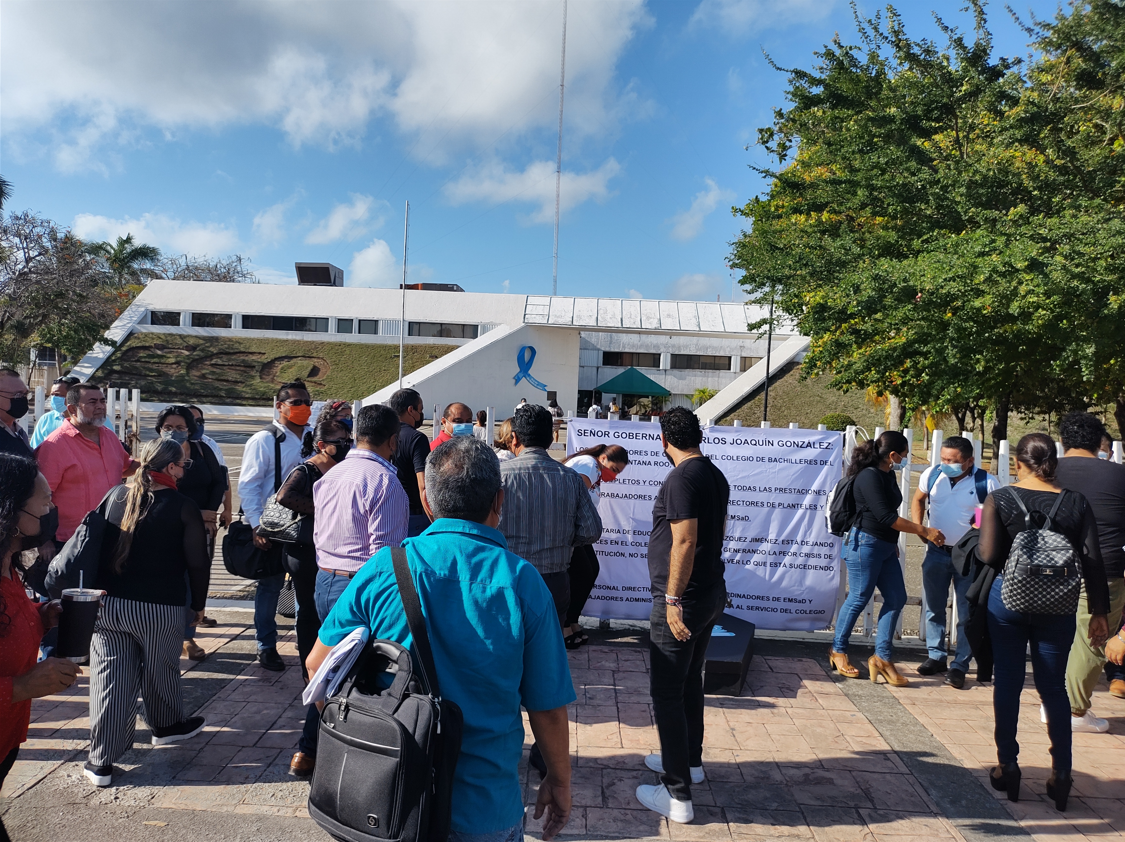 Al menos 40 directores de diversos planteles del Colegio de Bachilleres, se manifestaron está mañana a las afueras de la Secretaría de Educación de Quintana Roo (SEQ), esto debido a que señalan desde hace aproximadamente 3 años empezaron a ver una reducción en sus percepciones laborales, lo que derivó en una afectación a más de 700 empleados tanto directivos, docentes e intendentes, quienes han soportado debido a que es su única fuente de ingresos.