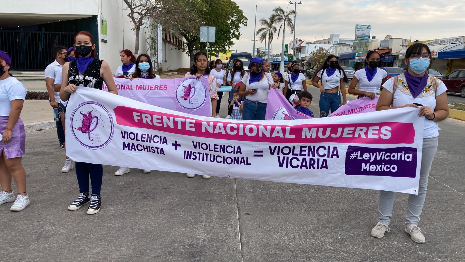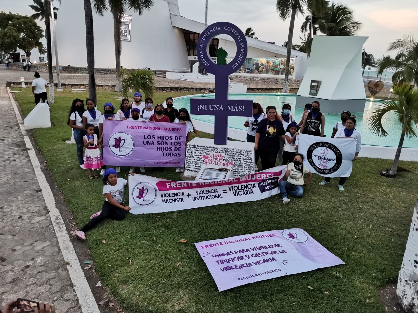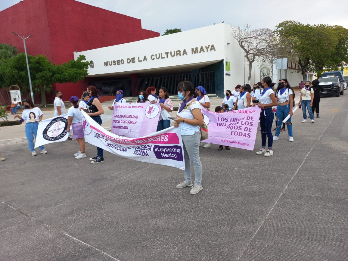 La Red Feminista Quintanarroense (RFQ) y la Red de Víctimas Quintanarroense (RVQ) junto al Frente de Nacional de Mujeres delegación Quintana Roo, realizaron una protesta pacífica para exigir al Congreso del Estado legisle al respecto de la violencia vicaria.