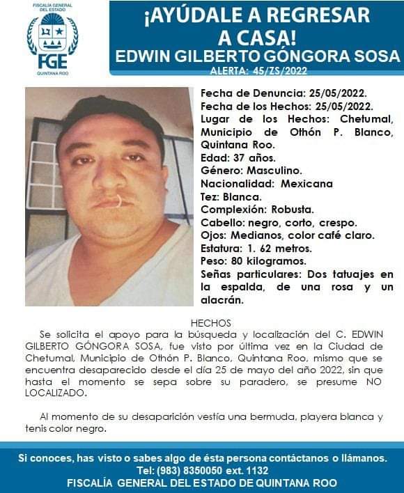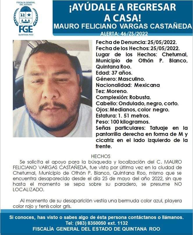 Ellos desaparecieron cuando iban camino a la comunidad de Lázaro Cárdenas en el municipio de Bacalar, se trata de Edwin Gilberto Góngora Sosa, Homeini del Ángel Góngora Díaz y Mauro Feliciano Vargas Castañeda, quien de acuerdo a lo relatado por sus familiares iban camino a la localidad de Lázaro Cárdenas para recoger a una cuarta persona, pero nunca llegaron a buscar a su amigo.