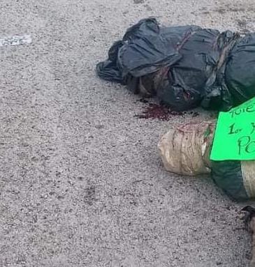 Los cuerpos yacían a media carretera y también se podía ver una cartulina clavada a uno de estos en la que se podía leer. “Esto va a pasar a todos los que no quieran hacer caso, 1er y último aviso, póngase verga».