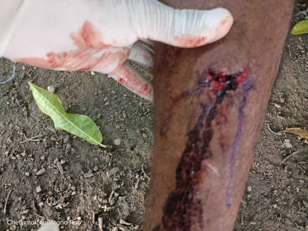 El hombre de identidad aún desconocida fue lesionado al grado que sufrió una fractura de cráneo derivado del machetazo en la cabeza, siendo llevado al hospital general de Chetumal para su correcta atención.