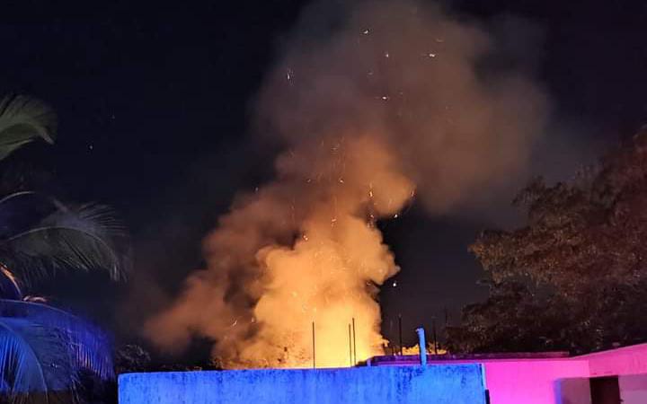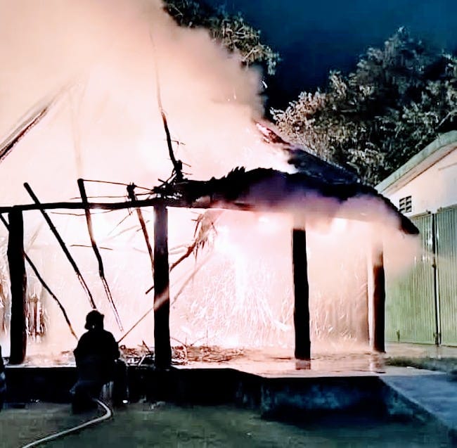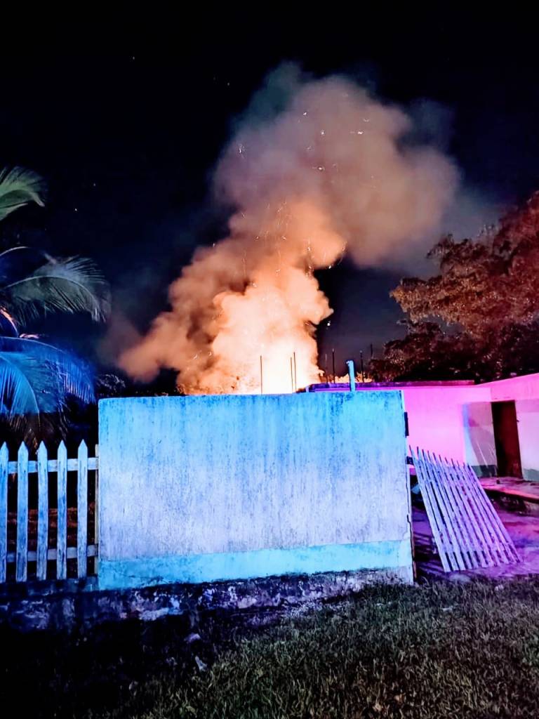 Esta noche una palapa quedó reducida a cenizas luego de que un presunto corto circuito en el cableado iniciará el fuego en la estructura, hecho ocurrido en la comunidad de Huay Pix.