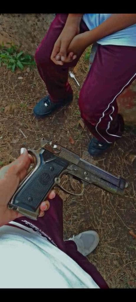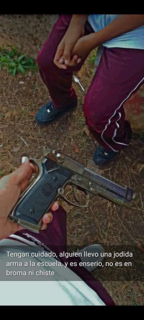 Los informantes anónimos compartieron imágenes que fueron captadas por los teléfonos celulares de los alumnos que estaban manipulando el arma antes de que el personal docente la asegurara.