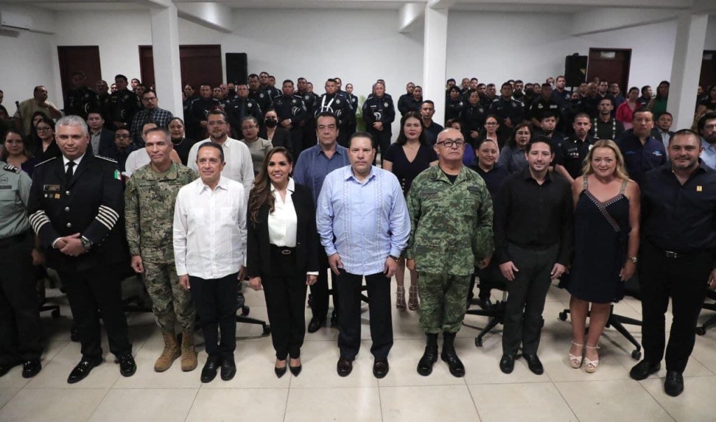 El diputado cozumeleño Renán Sánchez Tajonar, presidente de la JUGOCOPO de la XVII Legislatura atestiguó la transmisión de mando de la Secretaría de Seguridad Pública de Q.Roo, ceremonia encabezada por la gobernadora electa Mara Lezama y el nuevo titular de la institución Manelich Castilla Craviotto.
