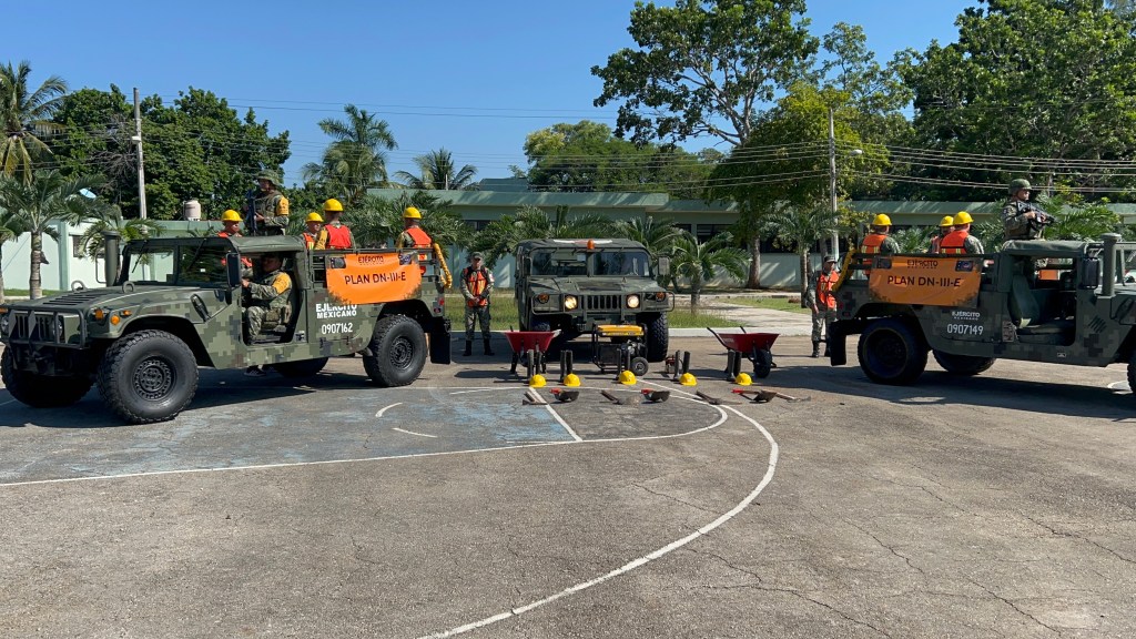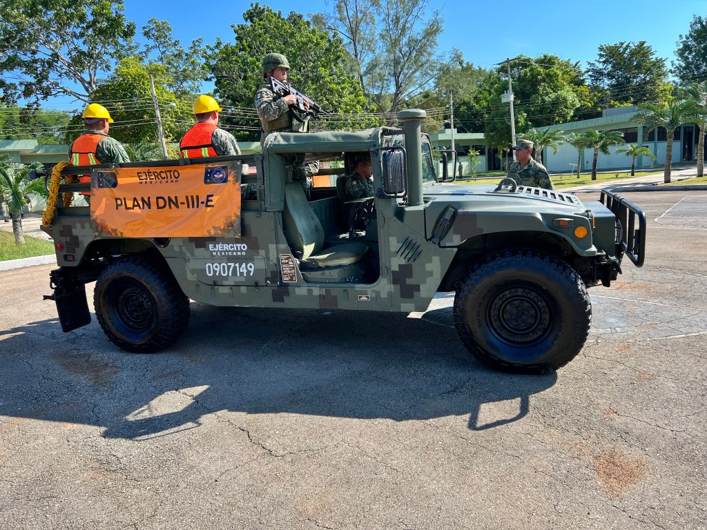 Los miembros del ejercito mexicano presentaron a través del 7/mo Batallón de Caballería Motorizada, los pormenores que se tienen actualmente para la activación del Plan DN-III-E, que se activara en caso de alguna situación climatológica que afecte al estado de Quintana Roo, incluso el Capitán Segundo de Caballería, Andrés Ricardo López Meléndez, destacó que se cuenta con 600 efectivos y 50 vehículos listos para activarse a la atención inmediata en caso de algún sismo, huracán o algún otro incidente provocado por el ser humano.
