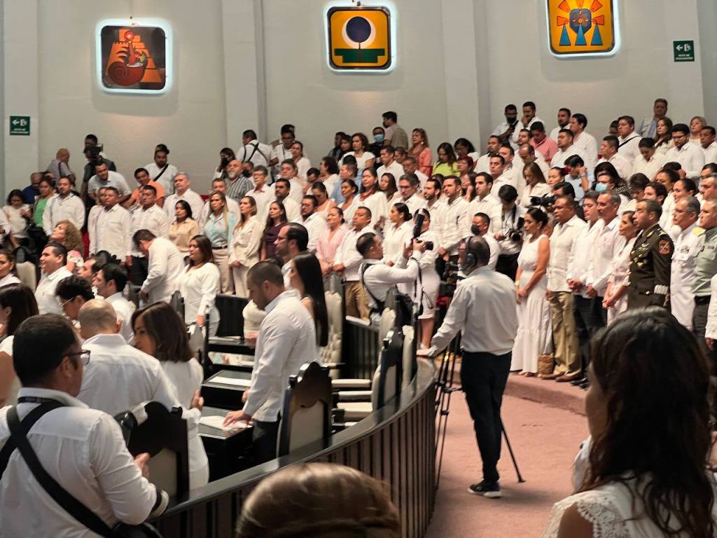 Posteriormente las autoridades se trasladaron al Congreso Local donde envió su mensaje a la población y señaló la entidad esta en constante transformación pero en este 48 aniversario, la transformación es para las mujeres que han ido ocupando cargos importante no por cuota, sino por esfuerzo y valía en el ámbito político.