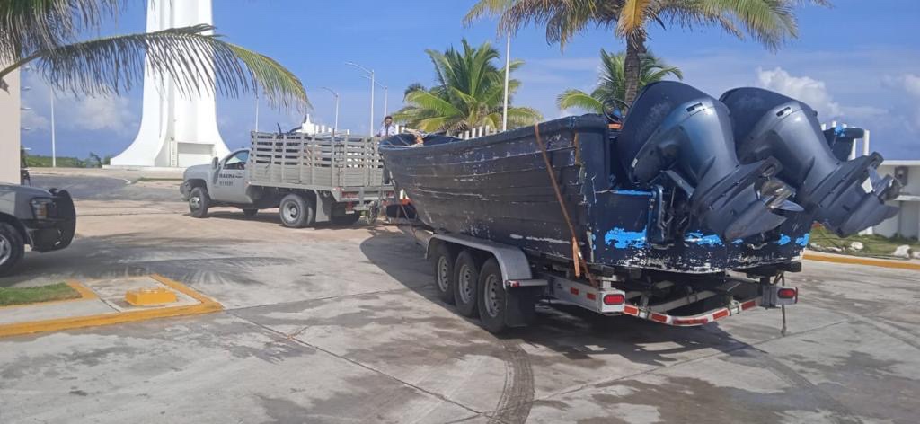 Con el apoyo de un avión y dos buques de la institución naval fue localizada la embarcación que se movía a alta velocidad de manera inusual, aproximadamente a 250 millas náuticas (463 kilómetros) al Este de Mahahual, Quintana, Roo.