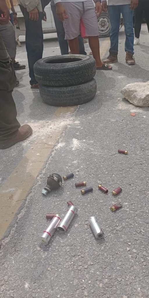 Los habitantes molestos por esta situación optaron por bloquear la carretera con palos y piedras, además de que prendieron fuego a botes de metal para evitar el paso de personas o la salida de los uniformados, exigen la intervención de las autoridades.