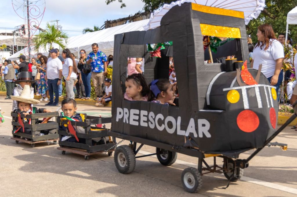 Padres de familia disfrutaron el tradicional desfile a lo largo de la avenida principal de la cabecera municipal, sobre la que marcharon contingentes procedentes de: