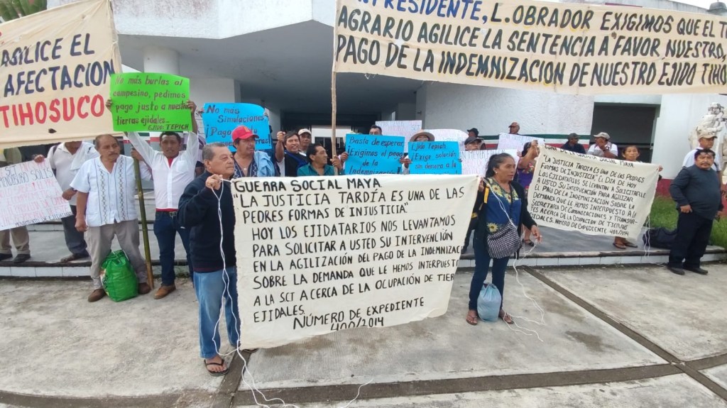 El ejido de Tihosuco exige el pago por 131 hectáreas en perjuicio de 804 ejidatarios; en el ejido de Tepichcorresponde el pago de 52 hectáreas patrimonio de 647 habitantes, y en el caso de Graciano Sánchez son 110 habitantes que reclaman 24 hectáreas.