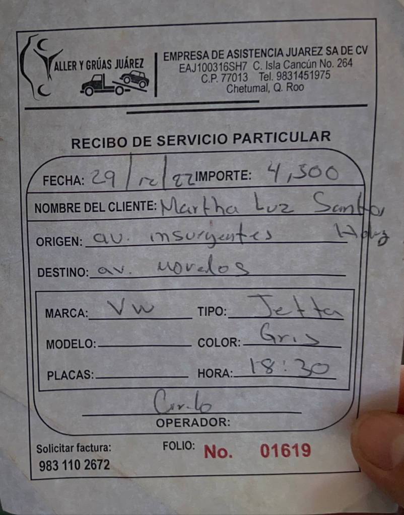 Una mujer con una discapacidad denunció la situación terrible que vivió en días pasados al ser víctima de un descarado abuso por parte de la empresa Gruas Juárez en complicidad con la dirección de tránsito del estado de Quintana Roo
