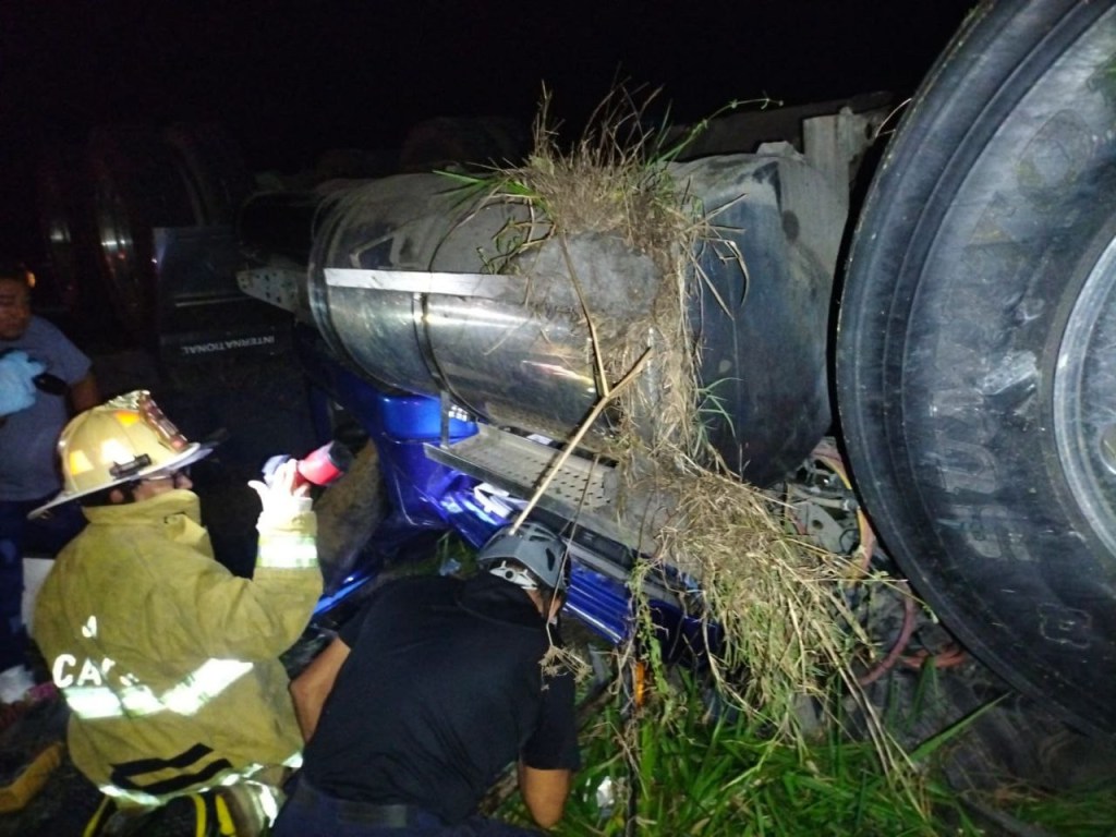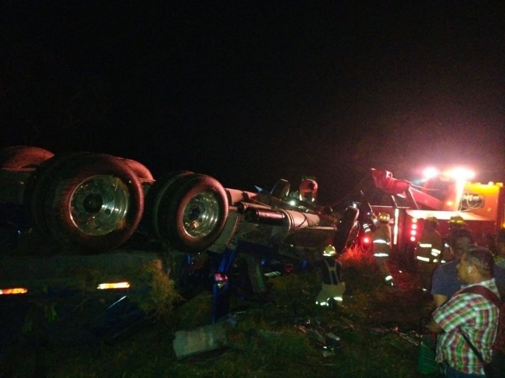 El incidente fue reportado a la media noche y los testigos señalaban que dentro de la cabina de un pesado trailer estaba una persona atrapada, por lo que requerían del apoyo de bomberos para salvar al conductor que estaba atrapado entre los fierros.