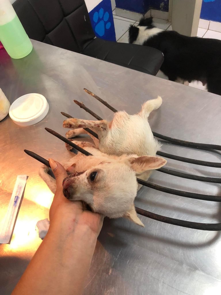 La veterinaria Animal Center “Pet Shop” fue la encargada de darle atención al perrito que se encontraba atravesado por lo que luego de darle la atención señalaron lo siguiente: “Hace unos días recibimos una llamada de emergencia donde se habían metido a robar a una casa, este precioso perrito quiso defender su espacio sin saber lo que le podrían hacer. Acudimos al lugar, Pincky se encontraba sangrando y con mucho dolor, lo tranquilizamos para poderlo levantar y transportarlo.
