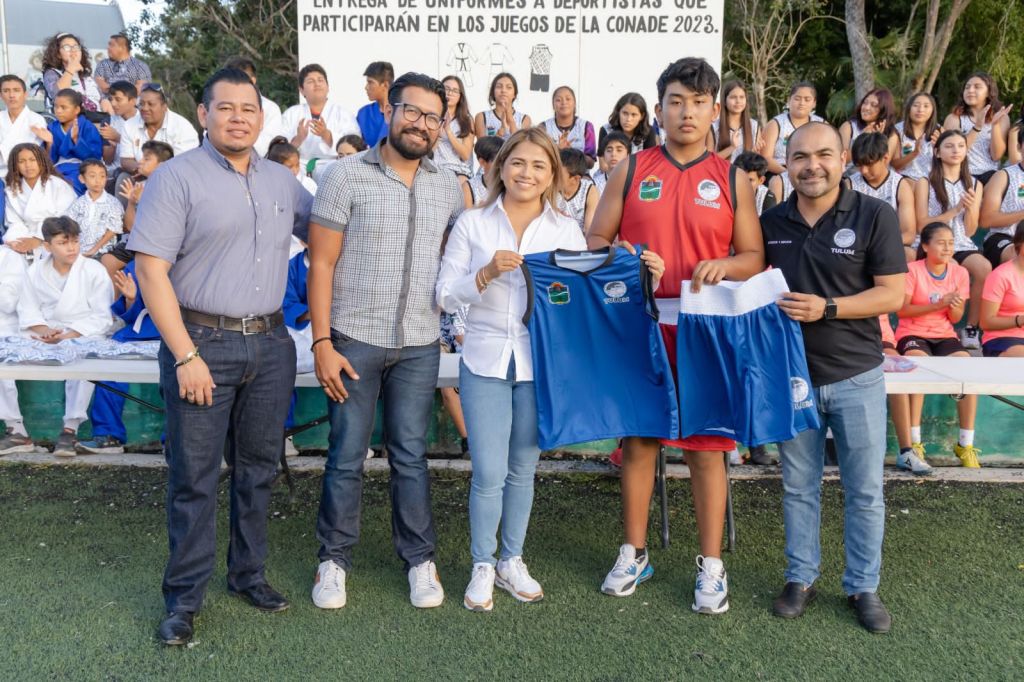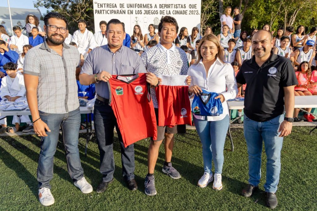 Este jueves, el gobierno municipal entregó uniformes a los atletas de las 12 escuelas deportivas municipales que participarán en los juegos deportivos CONADE 2023. Al mismo tiempo, el director de la Juventud y el Deporte, Ahmed Gómez Blancas, informó que este fin de semana arrancan las competencias y Tulum, será sede oficial de la disciplina de JUDO.