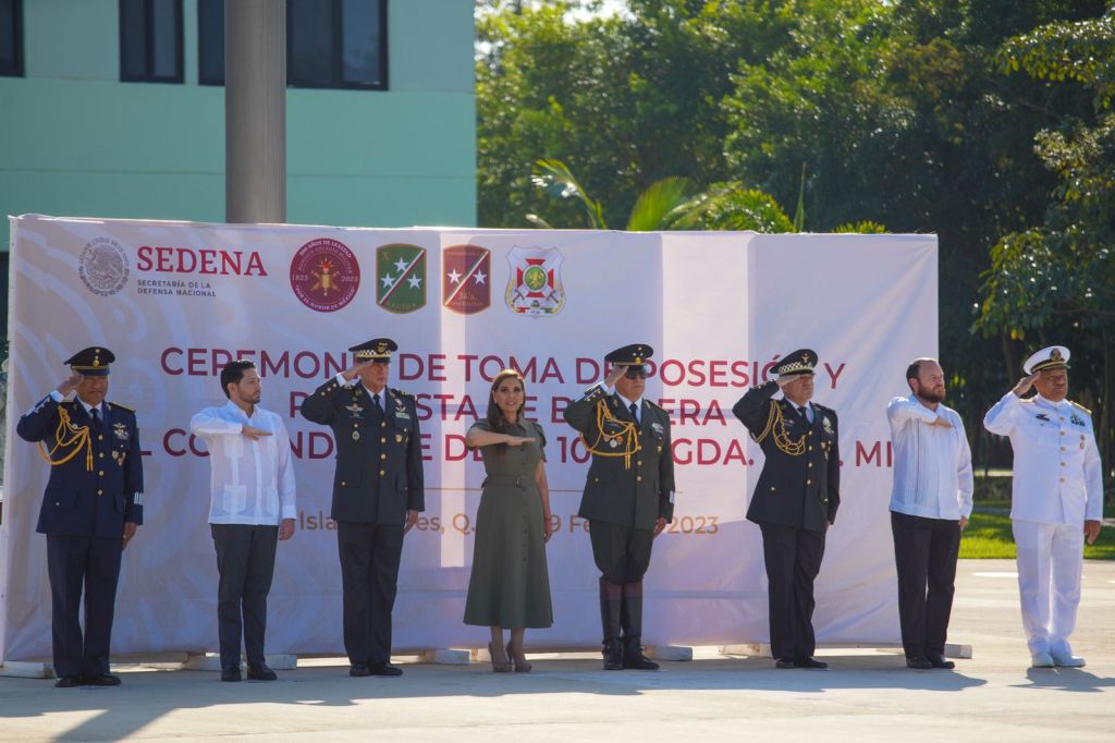 Mara Lezama participó en la ceremonia conmemorativa del 110 Aniversario del Ejército Mexicano que se realizó en la 10ª Brigada de la Policía Militar, marco en que el General Brigadier Diplomado de Estado Mayor, Israel Noé Castillo Pérez tomó posesión y rindió protesta como comandante de la brigada y como Coordinador Estatal de la Guardia Nacional.