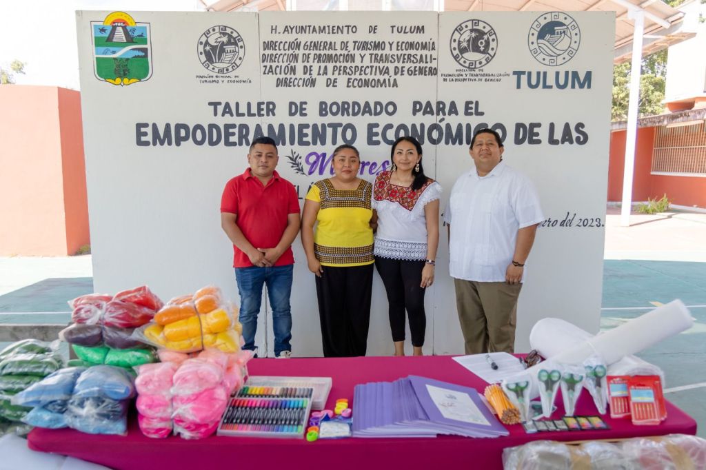 Tulum, 20 de febrero del 2023.- En apoyo a las mujeres de la zona maya de Tulum, el Ayuntamiento que preside el presidente municipal Marciano Dzul Caamal brinda un curso de bordado tradicional en beneficio de 70 emprendedoras tulumnenses.