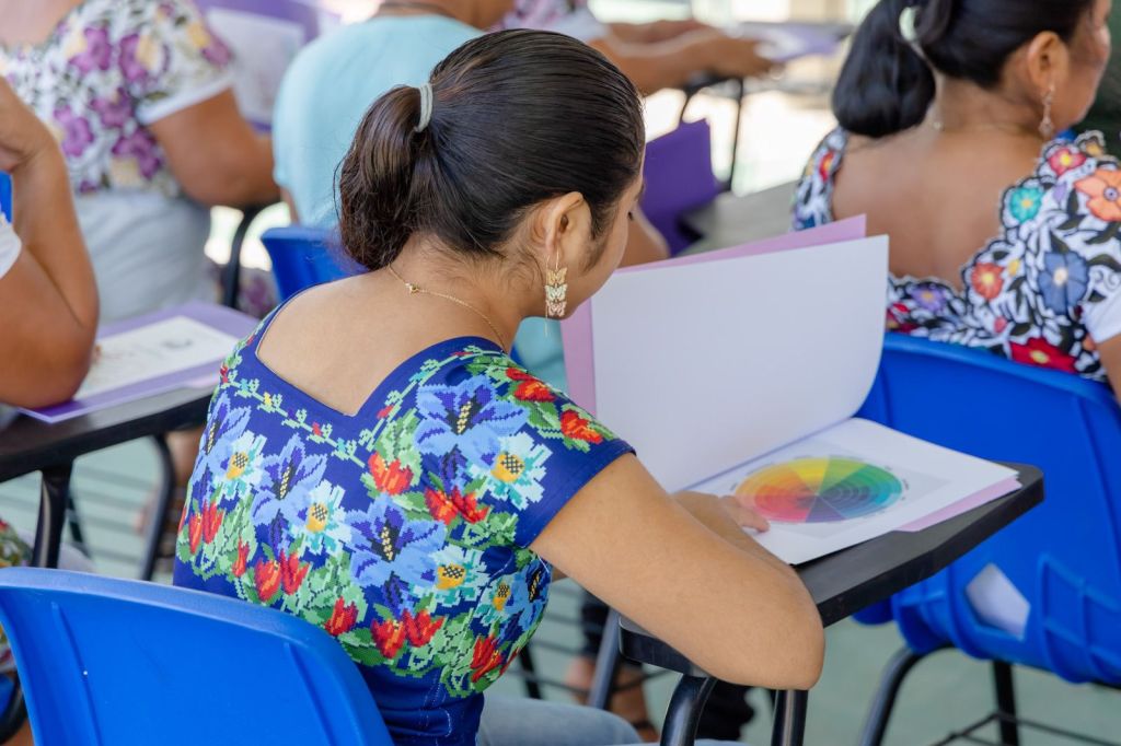 Bady Gómez Soberano, director de Economía, informó que dicho curso se imparte en las comunidades de Hondzonot y Chanchen 1 para enseñar las técnicas de hilo contado fino en malla, caneva de algodón, chuy kib e hilo contado doble a mujeres de entre 25 y 45 años.